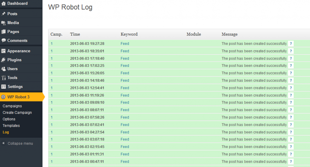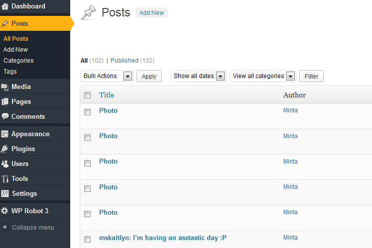 I set up WordPress Robot(An Auto Posting Plugin) on one of my blogs. The blog reached 102 posts.
